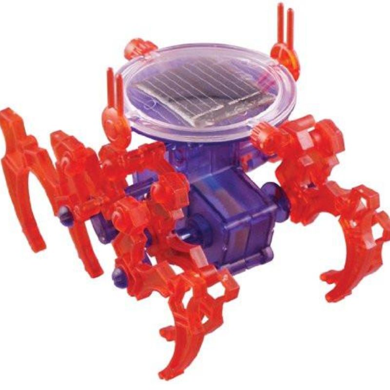 The spider is easy to assemble (fewer than 50 pieces) and demonstrates the use of solar power.