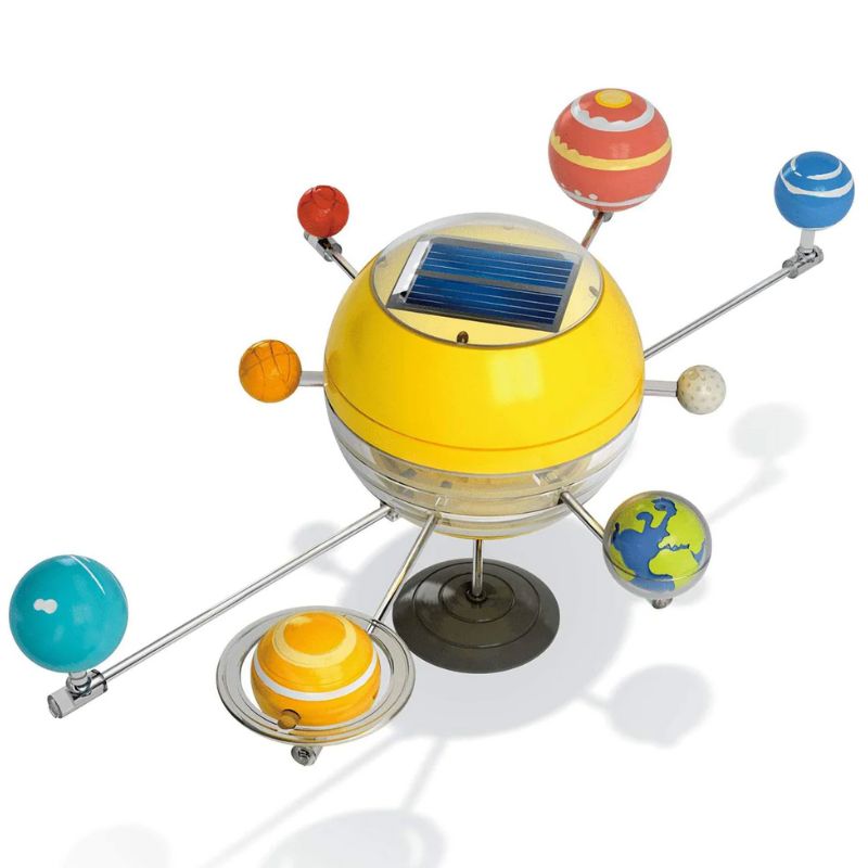 The Solar System Solar Kit helps children learn about everything from astronomy to ecology to physics while having fun in the process. The kit allows children to assemble their own models of the solar system and even includes six colors of opaque acrylic paint and a brush to make each planet look like the real thing. The sun in the center is outfitted with a solar cell that captures energy to allow the planets to really move in their orbits.