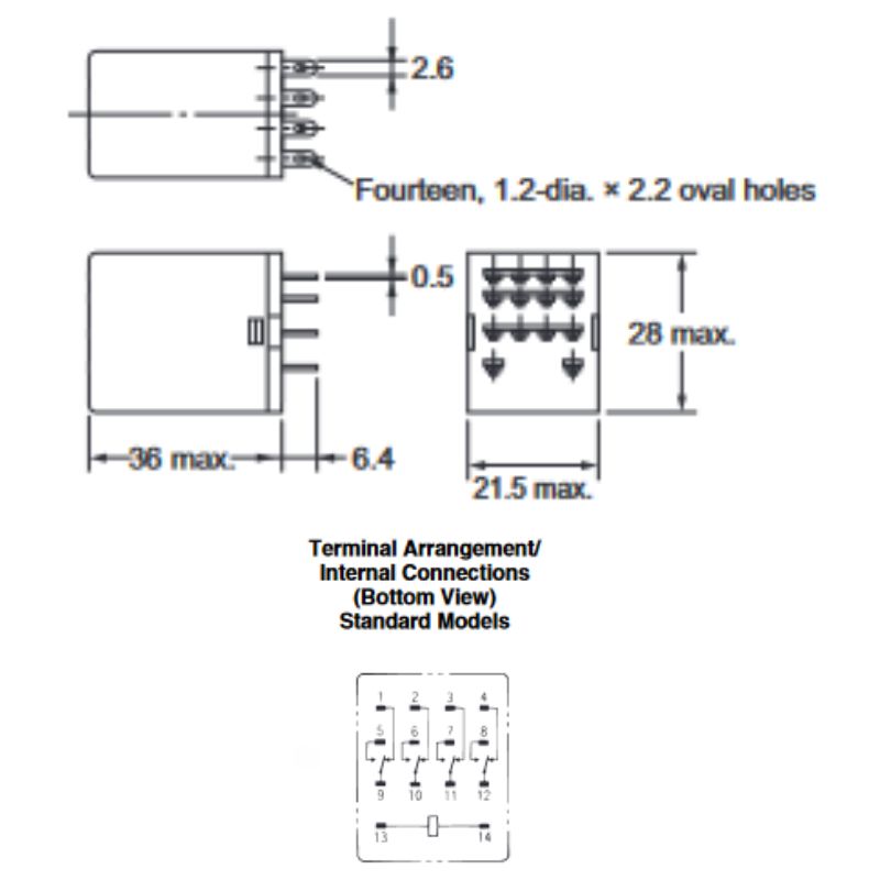 MY4-12VAC S - RELAY AC 12V 4P2T 5A 14P SOLDER PLUG-IN 5A/250VAC/30VDC