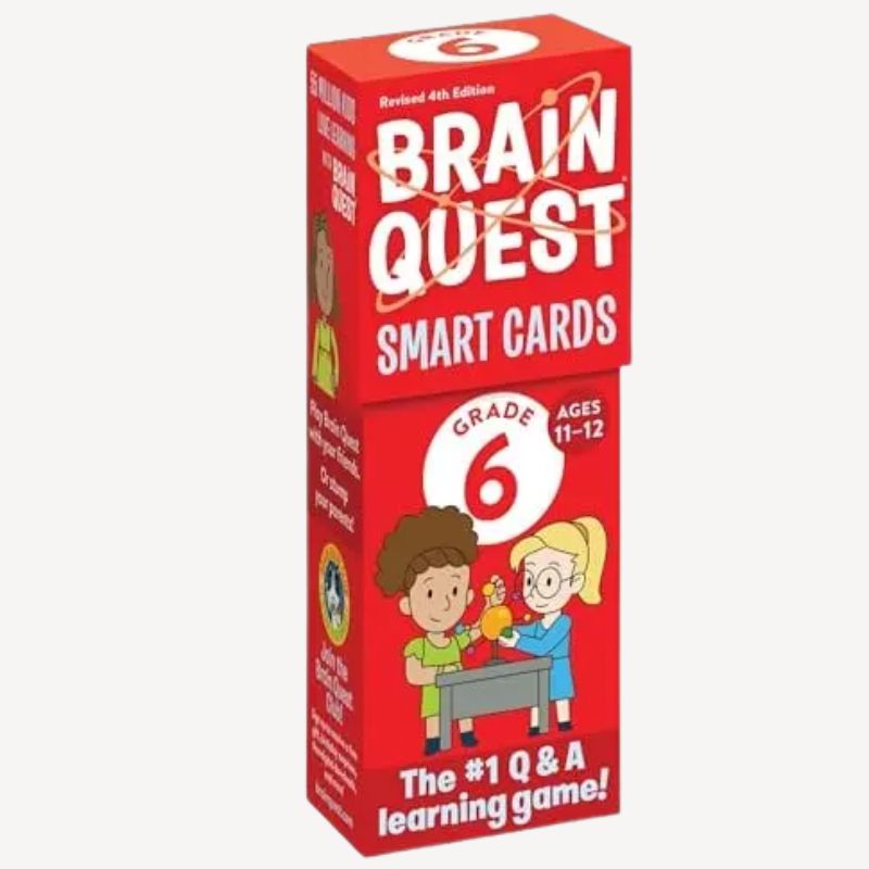 Brain Quest 6th Grade Smart Cards helps kids aged 11 – 12 to learn core classroom subjects in a smart entertaining and engaging way. It’s a Q&A game that sixth graders can play with friends family or against the clock to test their knowledge. Smart cards feature hundreds of questions with answers to help kids know exactly what they need to know when they need to know it.
