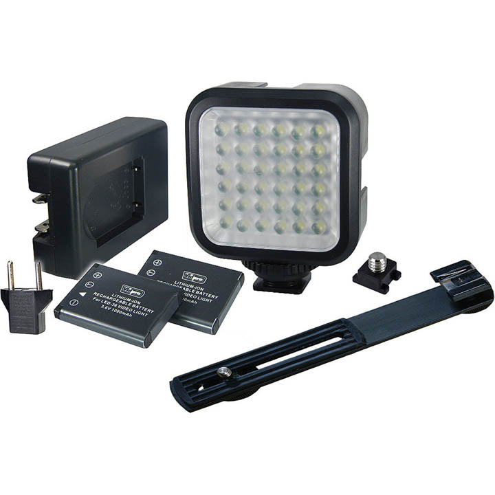 The VidPro Digital Photo and Video 36 LED Light Kit has 36 powerful LEDs to provide bright even lighting with a range of up to 25 feet. The interlocking housing design lets you create a stackable multiunit LED array.