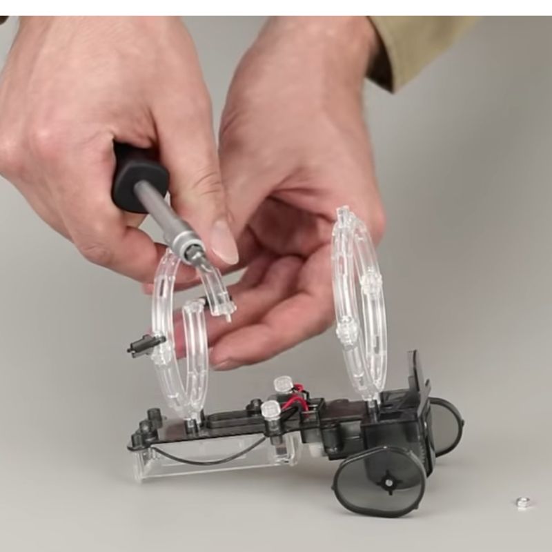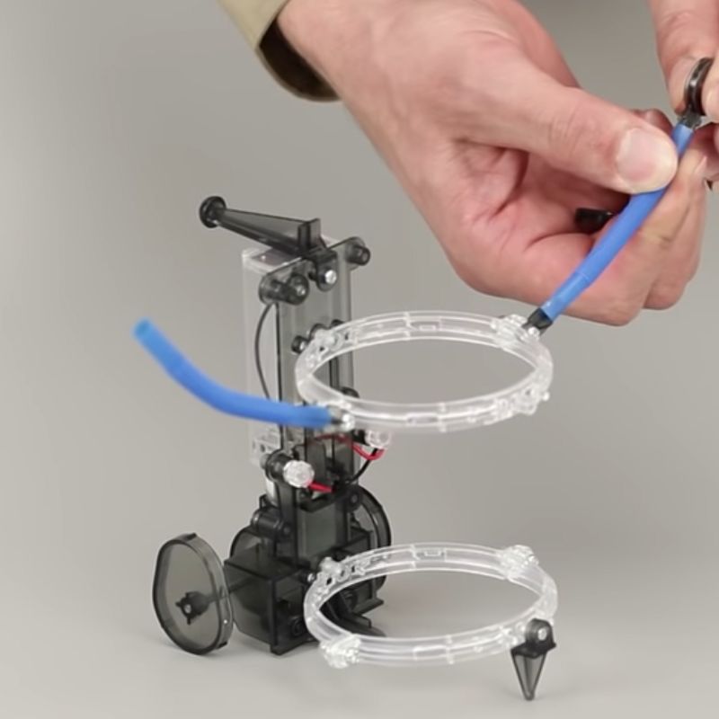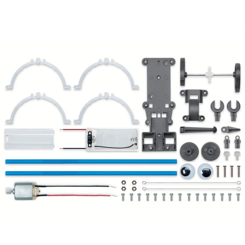 With the Tin Can Robot Kit mad scientists can add motors gears legs and batteries to rebuild a simple soda can. Throw the switch and... it's alive! The robot jitters around buzzing and clacking. Go beyond recycling!
