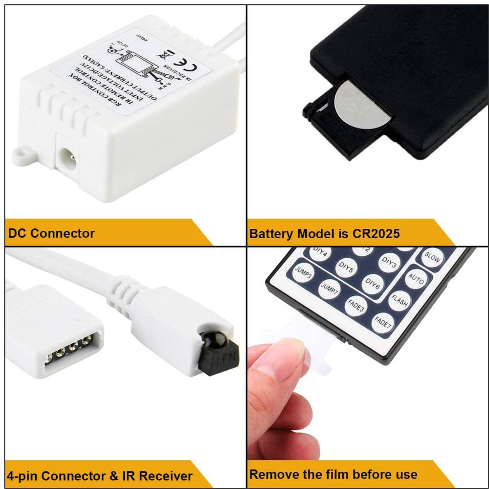 MultiFunctions There are 20 colors and 5 light pattern: Static/Flash/Strobe/Fadechange/RGB Smoothchange. Easy for you to turn ON/OFF strip lights DIY colors as you like and adjust brightness.