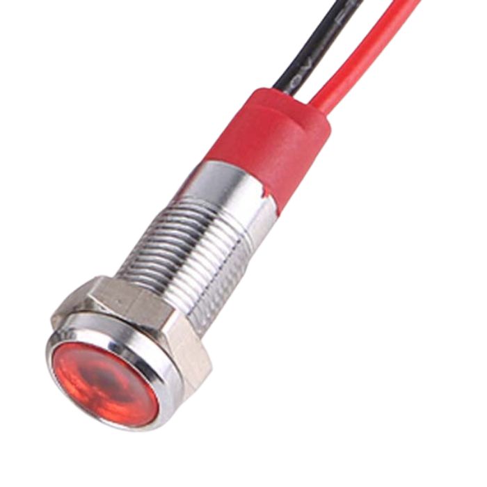 BMA-121 - INDICATOR LED 6V 6MM RED CHMT WIRES METAL IP67 PILOT LIGHT