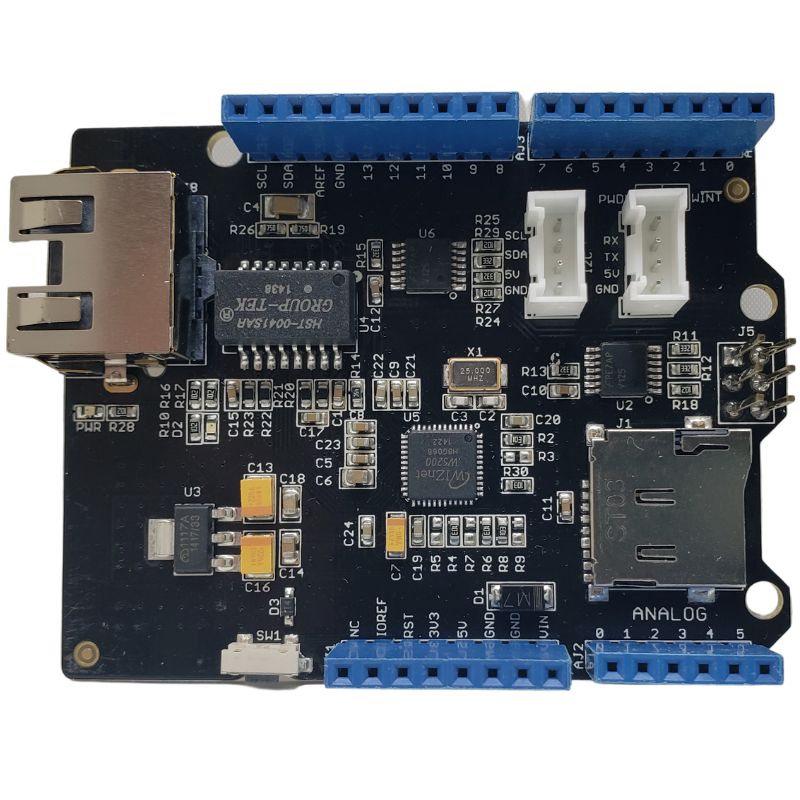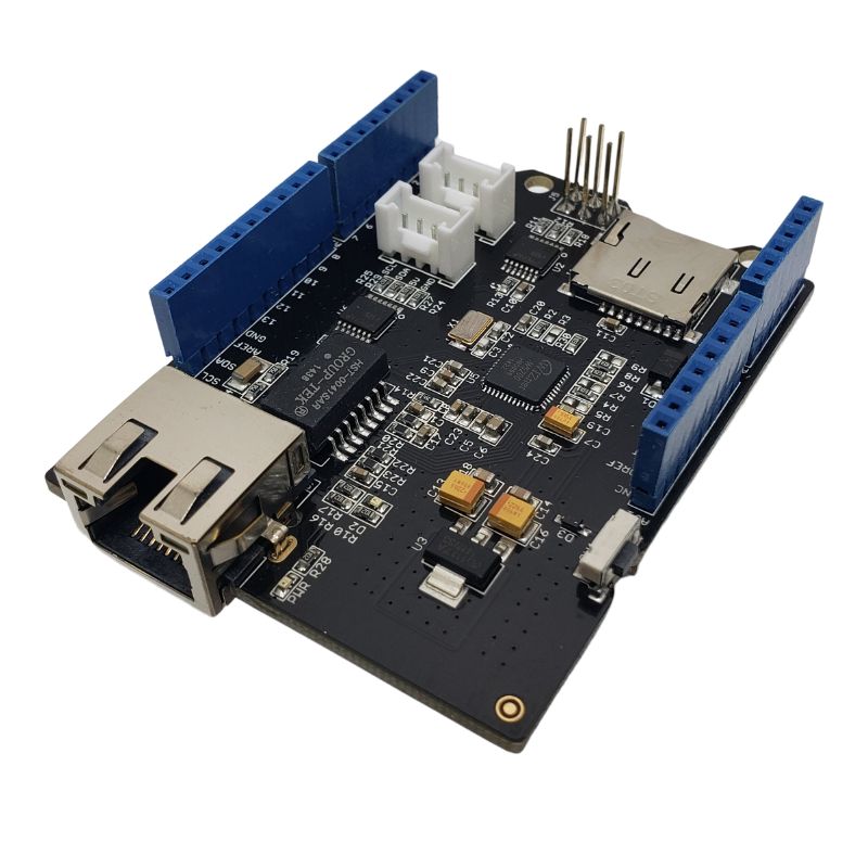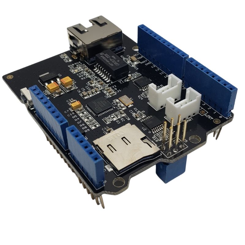 Ethernet shield instantly enables internet connectivity for arduino projects. An onboard wiz5100 ethernet controller handles up to four tcp and udp connections just stack it onto an arduino to create your own networked devices. Easily check connection status with on board indicator lights.