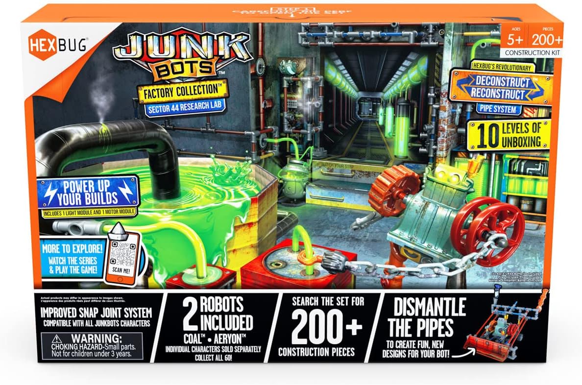 • The JUNKBOTS Small Factory Habitat Power Sub Station playset is full of surprises! Unbox the power generation plant to find hidden parts build allnew JUNKBOTS then deconstruct and reconstruct! 2 collectible robot characters & habitat included. 200+ construction pieces. Construction system made up of character components + pipes & connectors is built into the collection. Deconstruct to construct characters & contraptions for bots to utilize. Surprise blind box style packaging.