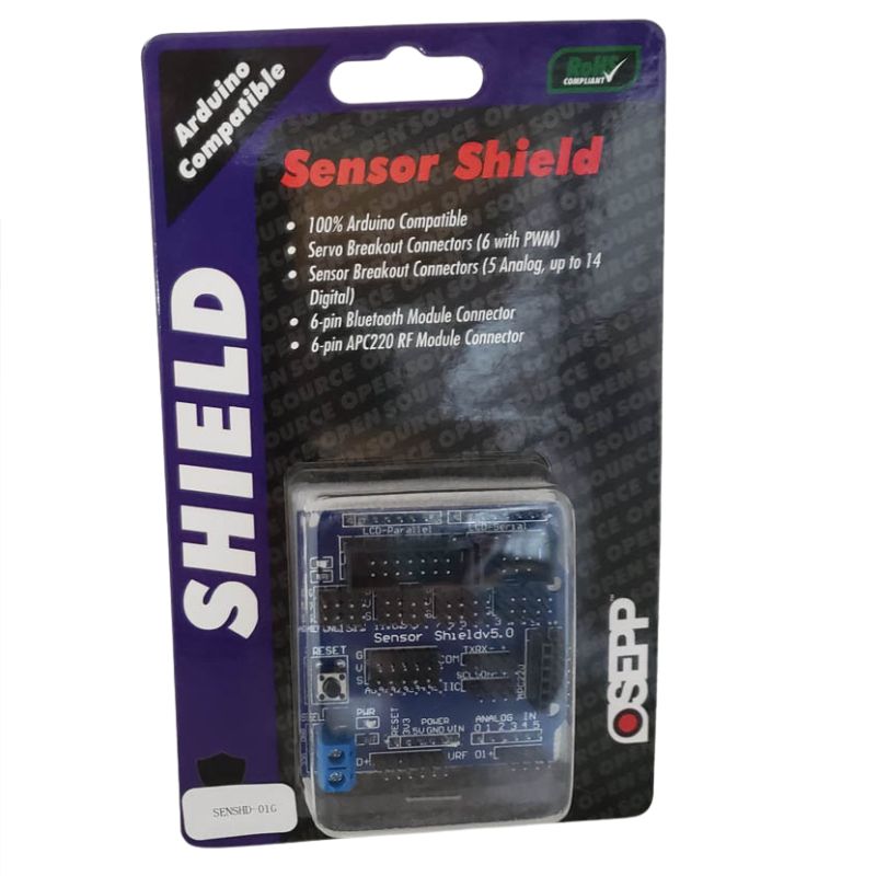 Easily connect Servo motors Sensors and Bluetooth/RF modules to your Arduino or Arduino Compatible board. This Sensor Shield provides breakout connectors for standard Servo Motors and various 3pin Sensors. A 5v DC screw terminal enables you to drive power hungry servo motors with an additional 5v DC power supply. Standard Arduino Shield form factor fits perfectly on top of the Arduino UNO and Mega.Features and Specifications: