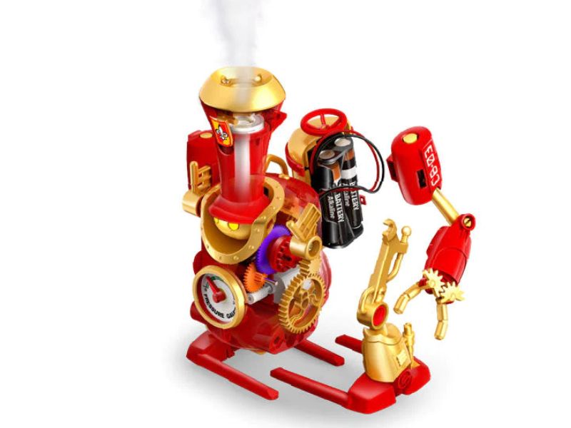 • Mr. Chimney 2 in 1 Ultrasonic Water Mist Science Kit: Build a Steam Train with fully functional piston or Steambot a robot that walk forward day and night with its special chimney.
