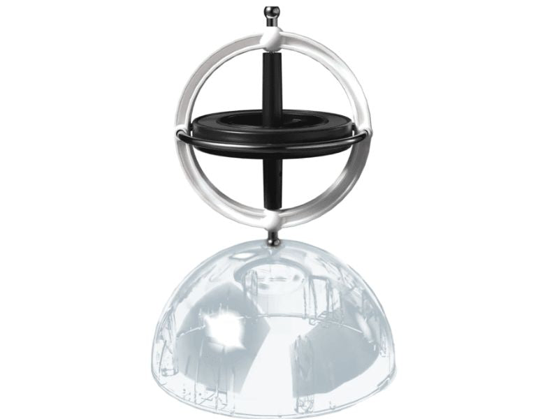 This timeless scientific instrument has been re imagined in a fresh new design. Experiment with the gyroscope to learn about the physics of motion forces and gravity. Learn about gyroscopic forces and see and feel them in action. Have fun getting your gyroscope to do classic physics tricks. Make the gyroscope balance on a tabletop on a stand and on a string. Spin the gyroscope inside the included clear plastic sphere and see and feel the forces acting on the sphere which doubles as a storage case for your gyroscope.