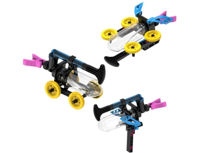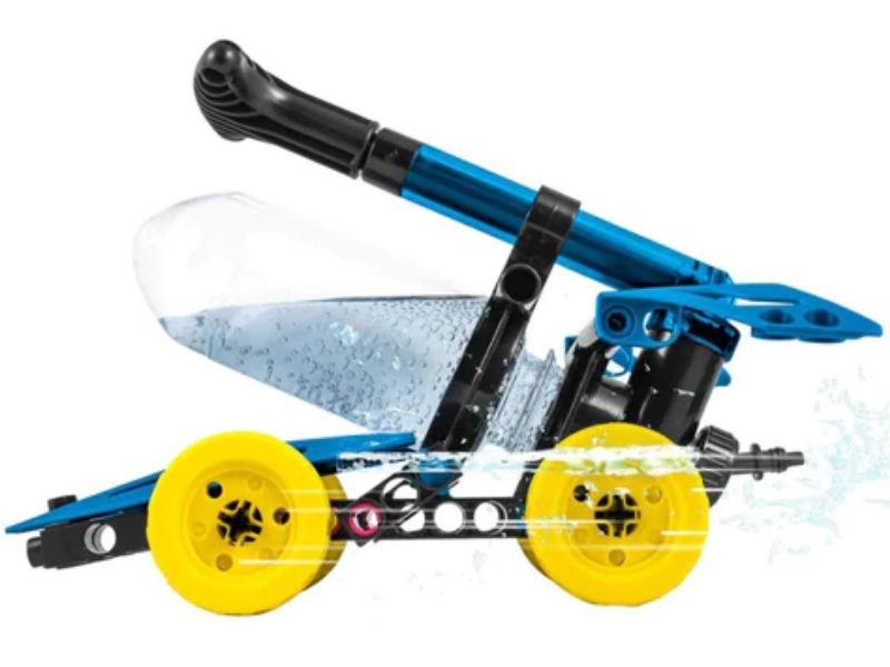 Harness the power of air and water to make things move! Build waterrocket cars jetpropelled boats a water gun and even a lawn sprinkler. Learn about the laws of physics and their applications in realworld engineering. When you pump air into your rocket you increase the air pressure inside. Then when you release the clamp watch out — the air and water mixture inside will shoot out causing your rocket to zoom off in the opposite direction! Many machines from the oldest pipe organs to modern day rocket ships use the same technologies that power your water rockets. Experiment to test some of the differences between water and air and learn why your rocket needs both to go fast.