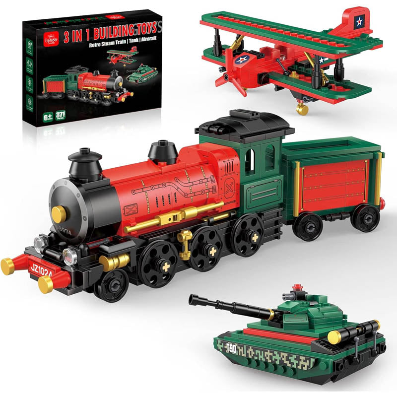 3 in 1 Toy Building Sets: Inspire endless creative play with this wonderful Creator 3 in 1 Steam Train Set which includes 3 models train airplane and tank. Open the toy train and start the fun train game. Your kids and family will love watching the trains move around. Not only can you let your kids play for hours but you can also improve their intelligence and exercise handeye coordination.