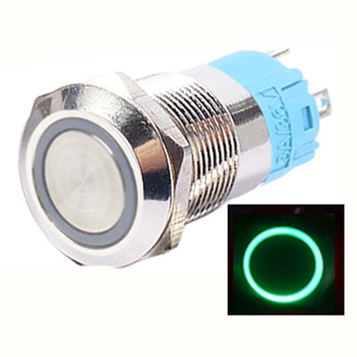 SCDT-7354 - PUSH SWITCH LIT MOM GRN 1P2T 16MM RND NO/NC 12-24V RING LED