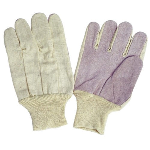 45I-604-B - GLOVES LEATHER PALM GRY LARGE COTTON BACK AND KNIT WRIST MENS (12 pcs/pkg)