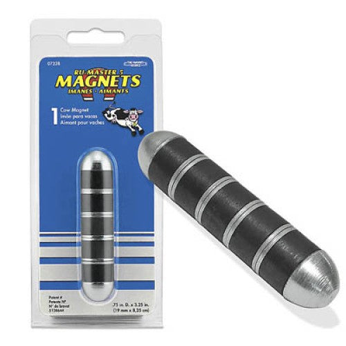 Features five powerful ceramic magnets strategically assembled with powerenhancing pole pieces for superior magnetic strength. Stronger durable and slightly heavier making it easier for the magnet to travel to its destination and stay there. Used by dairymen and veterinarians for animals. Helps prevent Hardware Disease by attracting stray metal from the folds and crevices of the rumen and reticulum. Nontoxic and noncorrosive in use. One magnet works for the life of the cow. Includes one magnet.