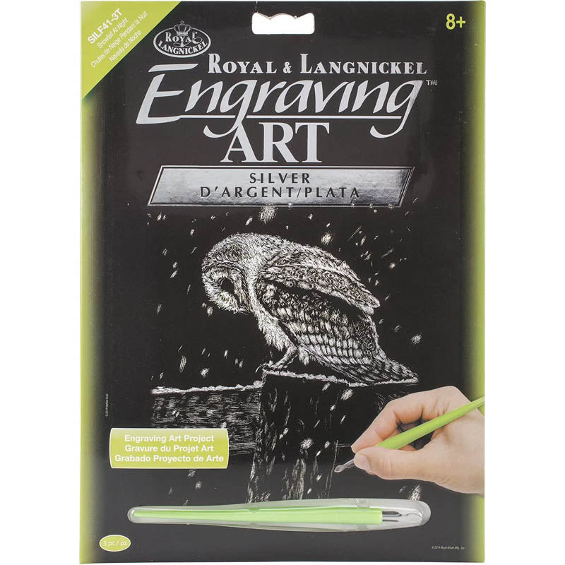 SILF41-3T - SNOWFALL AT NIGHT-SILVER FOIL ENGRAVING ART KIT 8 X 10IN