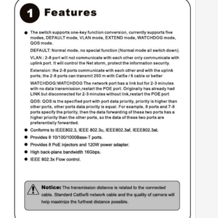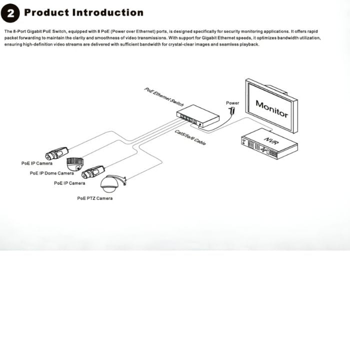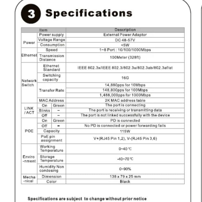S7008-8P-120 - POE SWITCH 8PORT GIGABIT 120W MAX 16GBPS 4K SURGER PROTECTION