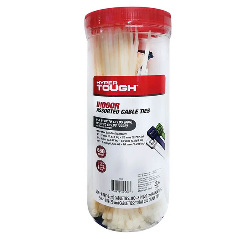 34538 - CABLE TIE ASSORTED COLOUR AND SIZE 650PCS/CANISTER
