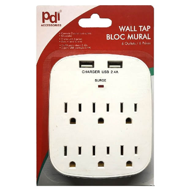 PDI-728 - WALL TAP 6-OUTLET 15A 125V 1875W 2-USB