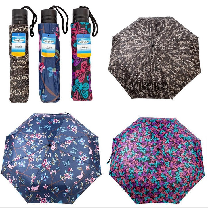 Ladies 3 Fold Umbrella Steel Shaft And Black Handle 3 Colours Assortment