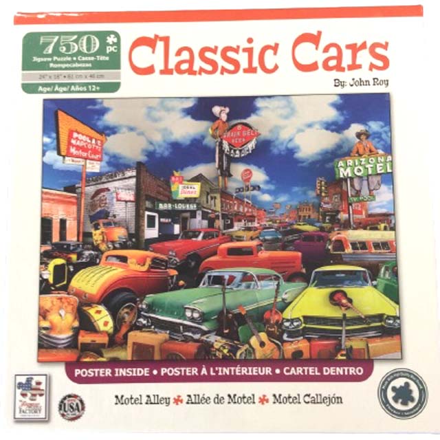 77434 - JIGSAW PUZZLE MOTEL ALLEY 24X18IN 750PCS CLASSIC CARS