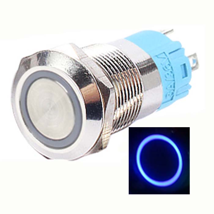 SCDT-7355 - PUSH SWITCH LIT MOM BLU 1P2T 16MM RND NO/NC 12-24V RING LED