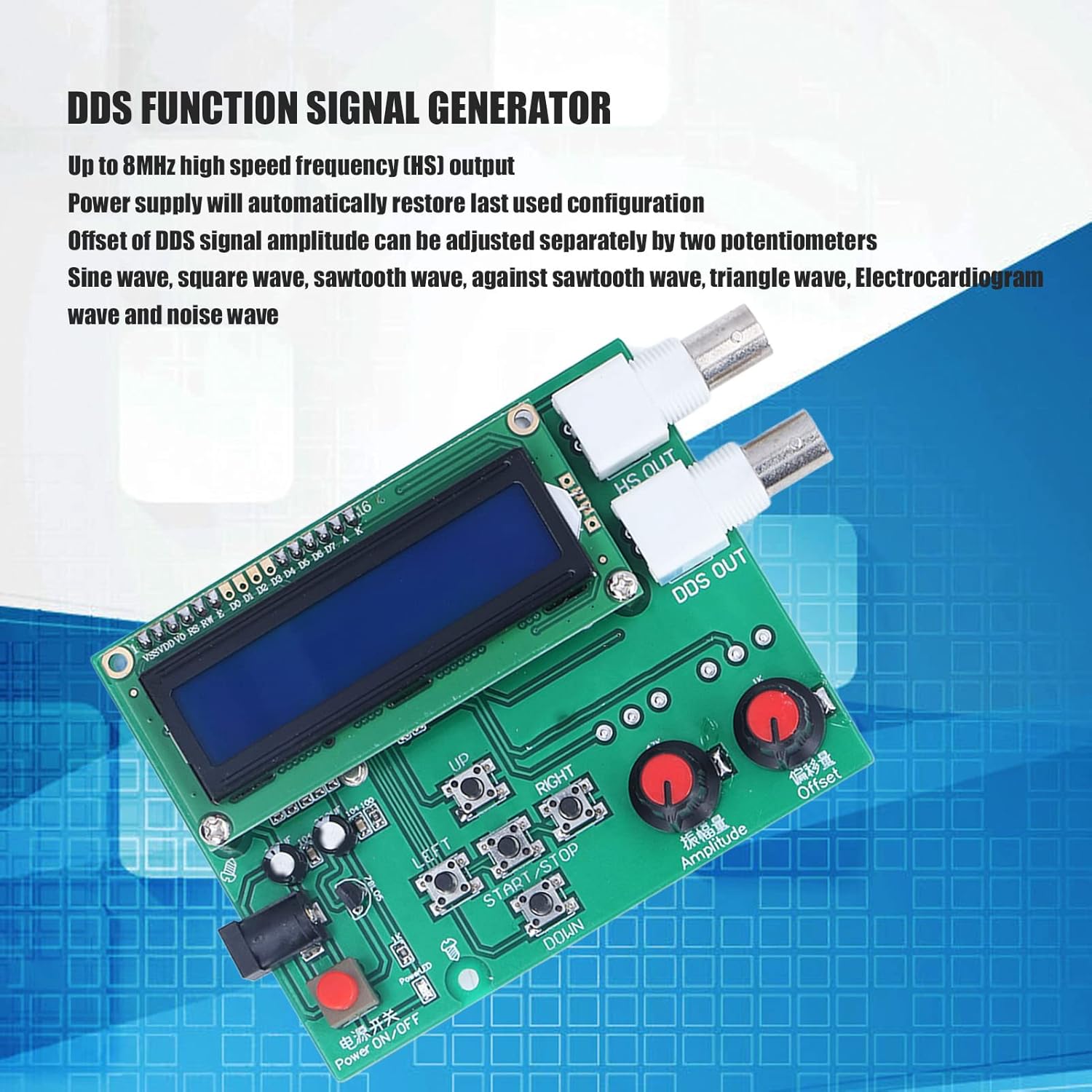 [High Speed Frequency Output] Output frequency up to 8mhz with adjustable offset and amplitude for precision generation.