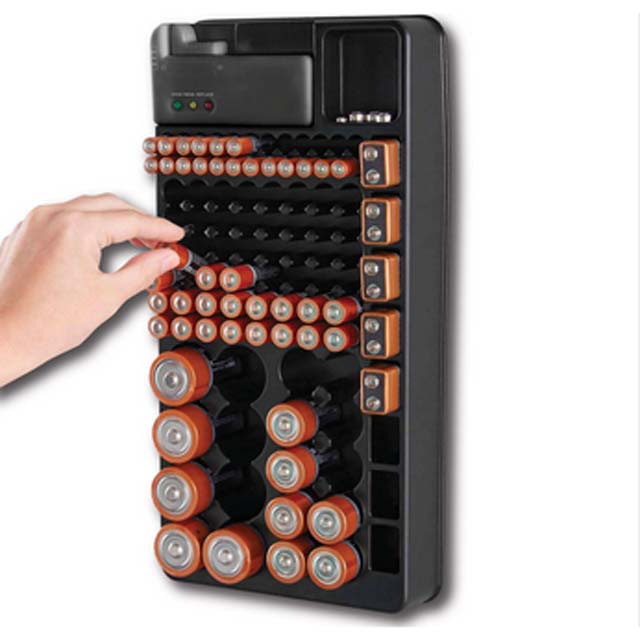 301651 - BATTERY ORGANIZER W/TESTER HOLDS 98 BATTERIES TESTS AAA AA C D 9V