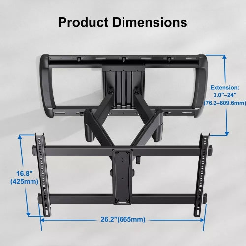 •Extension 7.62cm/3.0” to 60.97cm/24” enables the perfect TV position anywhere in the room