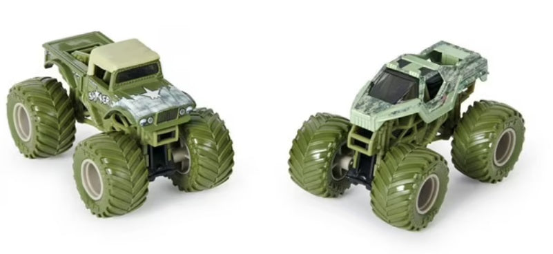 Get ready for epic showdowns with the official Monster Jam 1:64 scale diecast trucks 2Packs! Every 2Pack features matchups of the most popular and soughtafter Monster Jam monster trucks like Grave Digger vs. Avenger MaxD vs. Sonuva Digger Zombie vs. Whiplash and more! Each Monster Jam truck in the 2Pack has awesome details and graphics. With official BKT Tires stylized rims and authentic chassis these lean mean Monster Jam machines embody the style and swagger of their reallife counterparts! Unleash the Monster Jam action right out of the box and create your own stunts and jumps like you’ve seen in the live shows! Then prepare for the ultimate Monster Jam trucks faceoff! Add all of the 2Packs to your collection (toys each sold separately) and host your very own Monster Jam event with your friends! Monster Jam monster truck toys are the perfect gifts for kids ages 3 and up. Experience headtohead action with the official Monster Jam 1:64 scale diecast 2Packs!