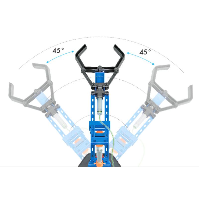The arm features 4 precision control levers for this multiaxis robot a rotating base and rubber tips on the grabber for solid gripping