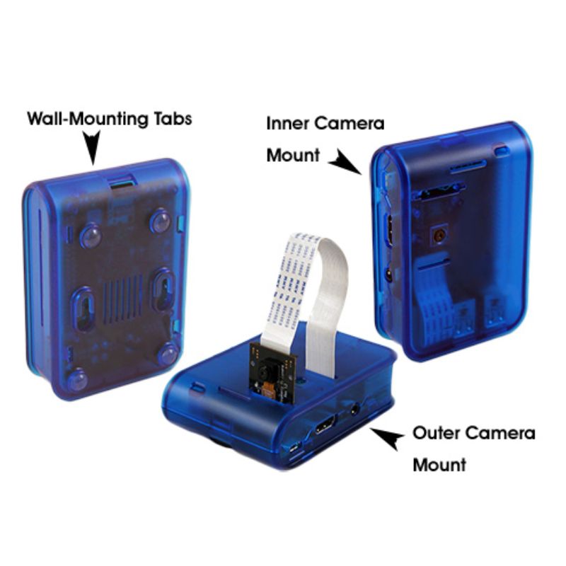 Molded to accept popular development boards Raspberry Pi. Translucent Blue general purpose ABS plastic with a satin texture.