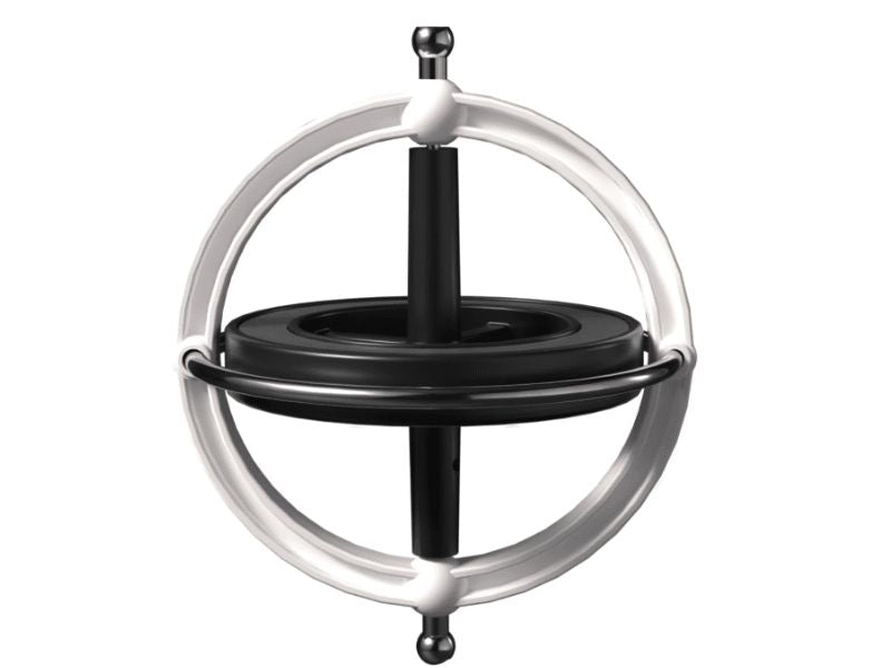 This timeless scientific instrument has been re imagined in a fresh new design. Experiment with the gyroscope to learn about the physics of motion forces and gravity. Learn about gyroscopic forces and see and feel them in action. Have fun getting your gyroscope to do classic physics tricks. Make the gyroscope balance on a tabletop on a stand and on a string. Spin the gyroscope inside the included clear plastic sphere and see and feel the forces acting on the sphere which doubles as a storage case for your gyroscope.
