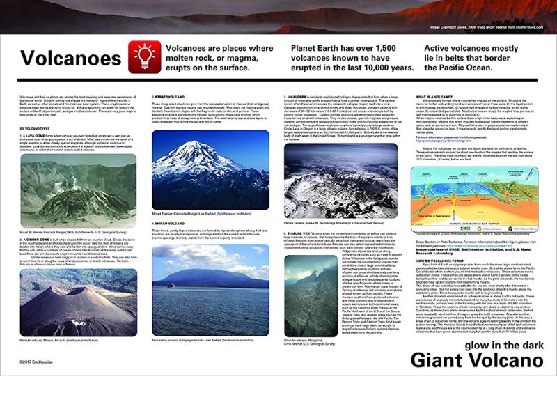 Let kids discover the explosive world of tectonic movement and volcanoes with the NSI Smithsonian Giant Volcano Kit. This complete set includes a 2 buildityourself realistic volcanoes accessories and instructions. Complete educational volcano kit. Study the differences in 6 types of volcanoes. Build and erupt a 14inch volcano. Glowinthedark technology. Vinegar and baking soda required (not included).