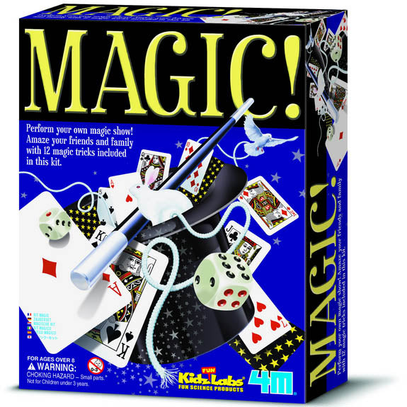 Contents include 1 magic wand 1 deck of playing cards 1 magic playing card 1 rope 6 mystic number cards 2 dice and a variety of other specially designed magic accessories for performing 12 tricks. Also includes a 16 page fully illustrated magic instruction booklet (containing magical tips and tricks!).