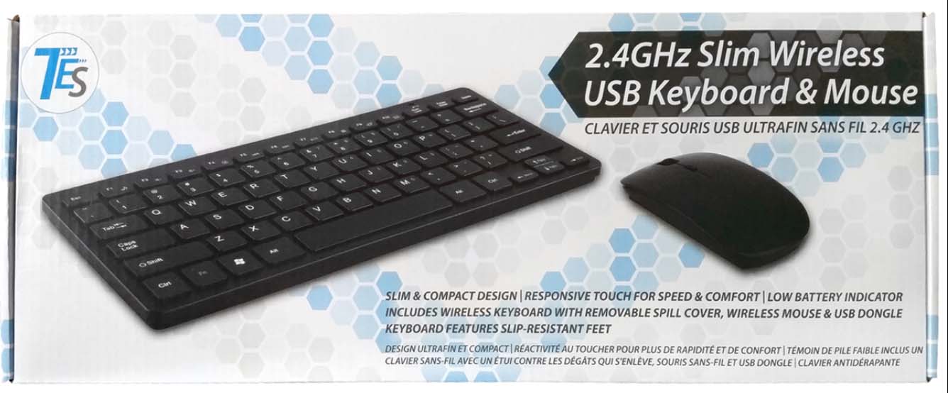 - 2.4 GHz slim wireless USB Keyboard and Mouse