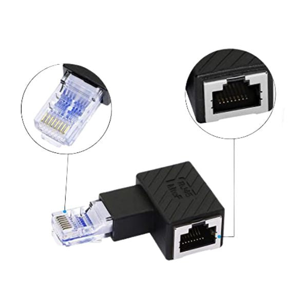 AGAA-9954 - RJ45 8P8C PLUG/JACK RIGHT ANGLE ADAPTER CAT5/6 LEFT SIDE
