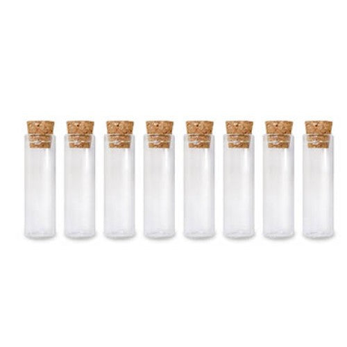 GB852 - VIALS CLEAR GLASS WITH CORK LID 12MMX40MM 3ML (8 pcs/pkg)