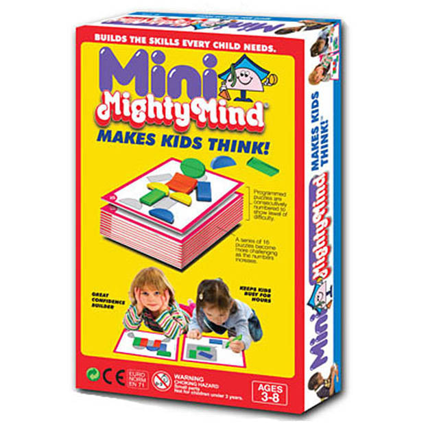 This mini version of mightymind introduces children to logic reasoning & problemsolving skills.Kids learn counting sorting colourmatching & spatial relationships.Contains a specially programmed series of 16.