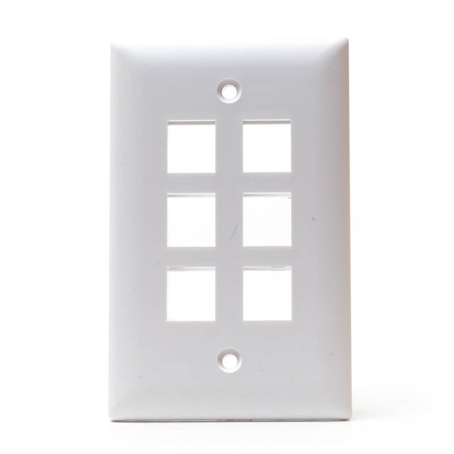 - SINGLE GANG 6 PORT WALL PLATE / FLASH PLATE TO CONNECT THE RJ45 RJ11 RJ12 F TYPE RG6 COAX HDMI FIBER OPTIC RCA KEYSTONE JACKS AND MODULAR INSERTS.