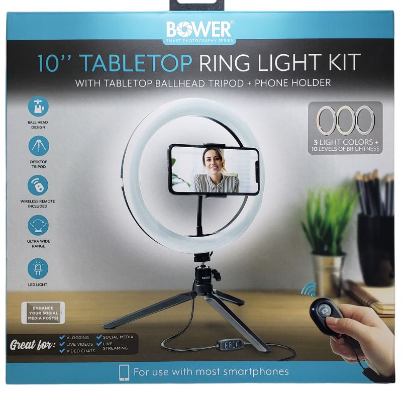 The Bower® 8’’ Tabletop Ring Light Kit transforms your smartphone into a professional photo studio.