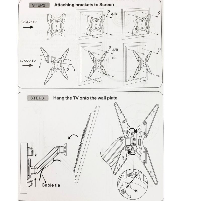 KXL43B - TV WALLMOUNT UPTO 32-55IN TILT SWIVEL 50LBS
