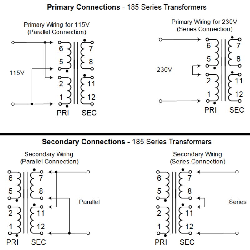 - Dual secondaries for series or parallel connections