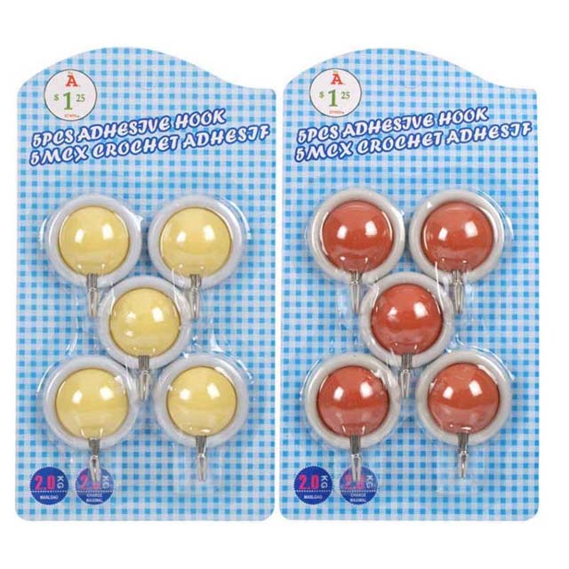 K102K5Q - UTILITY HOOK ADHESIVE ASSORTED COLORS (5 pcs/pkg)