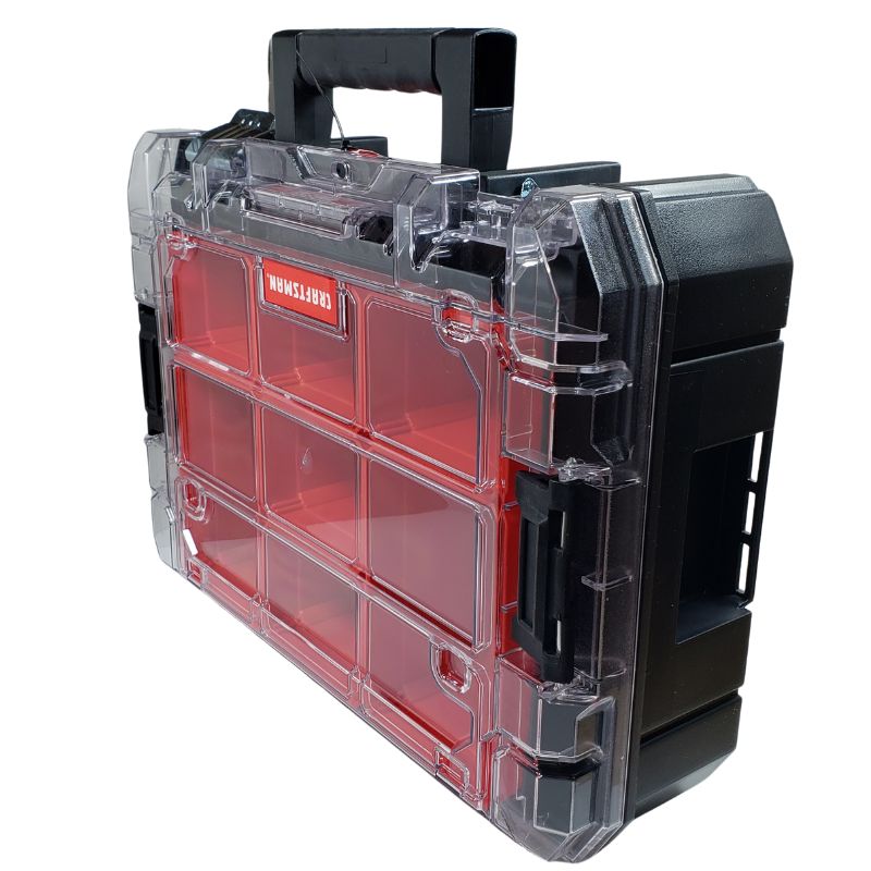FLEXIBLE STORAGE CONFIGURATION: Removable compartments for small parts and accessories: Once removed you can store a power tool and charger