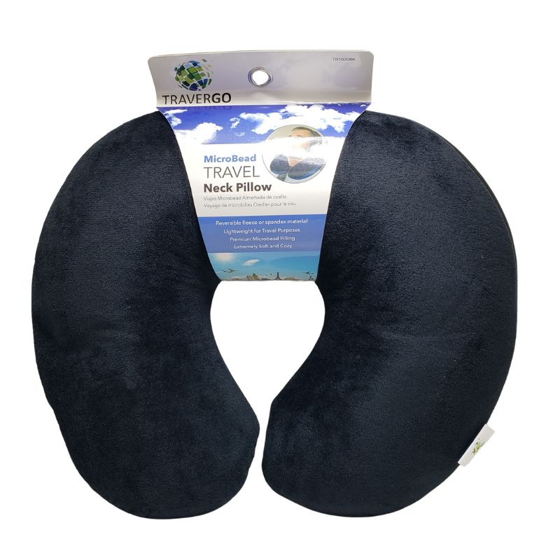 TR1020BK - TRAVEL PILLOW MICROBEAD BLACK EXTREMELY SOFT AND COZY