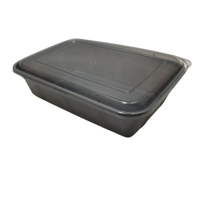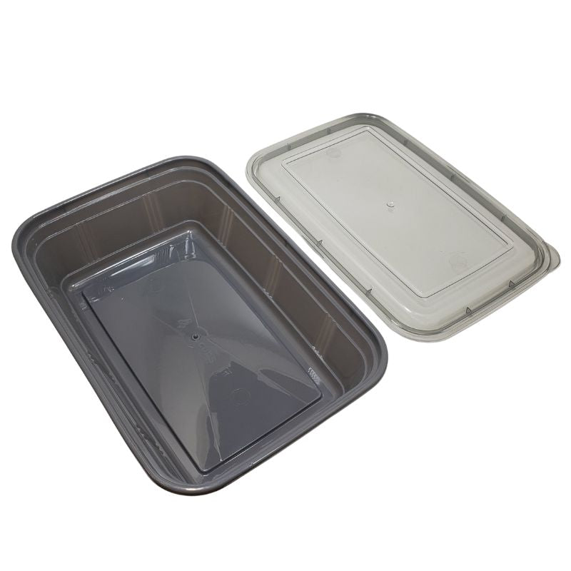 SINGLE COMPARTMENT MEAL PREPARATION BOX WITH LID DISPOSABLE GREY PLASTIC