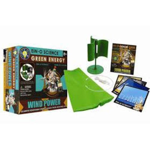 Where does wind come from? How does a windmill create electricity? This Wind Power kit answers these questions and so many more. Additionally it teaches the basics of wind power and ways that scientists are using it to replace fossil fuel energy today all through fun handson experiments that further the educational experience. With the EinO I Know Guide young scientists will learn about the different kinds of wind turbines build a windsock and a wind speedometer and learn how the wind can be harnessed to protect Mother Earth. Includes windsock string plastic wire wind vanes support pole & stand top fastener bottom fastener 4 picture cards and a convenient plastic storage box. Collect all 4 green energy kits!