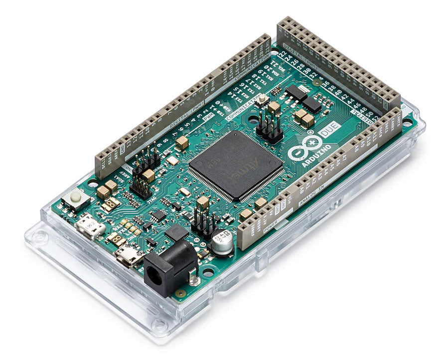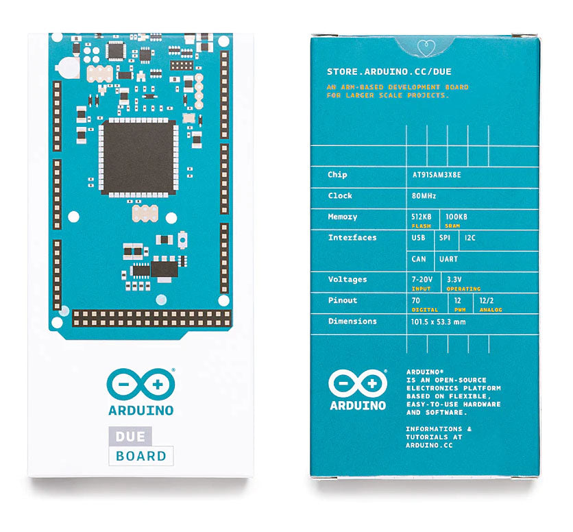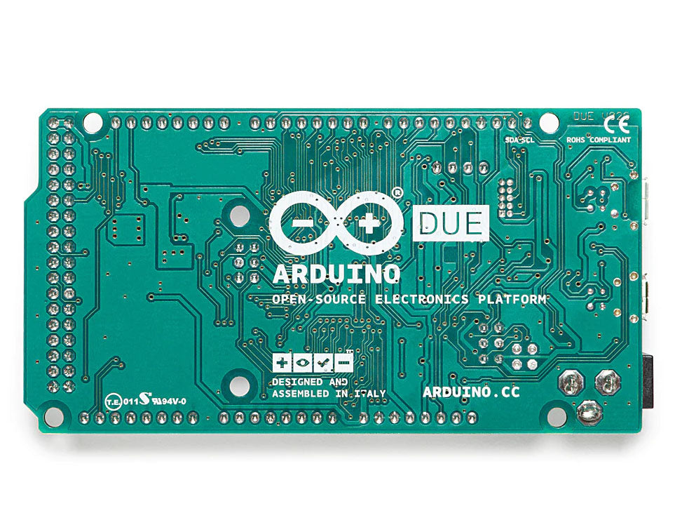 The board contains everything needed to support the microcontroller; simply connect it to a computer with a microUSB cable or power it with a ACtoDC adapter or battery to get started. The Due is compatible with all Arduino shields that work at 3.3V and are compliant with the 1.0 Arduino pinout.