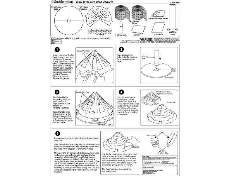 Let kids discover the explosive world of tectonic movement and volcanoes with the NSI Smithsonian Giant Volcano Kit. This complete set includes a 2 buildityourself realistic volcanoes accessories and instructions. Complete educational volcano kit. Study the differences in 6 types of volcanoes. Build and erupt a 14inch volcano. Glowinthedark technology. Vinegar and baking soda required (not included).