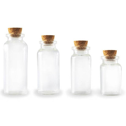 GB800 - BOTTLE CLEAR GLASS WITH CORK LID 7/10/15/20ML 4PCS/SET